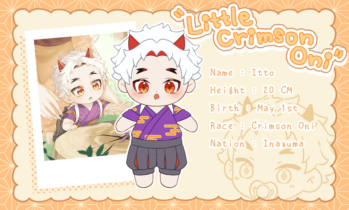 Little Crimson Oni คือดีไซน์วัยเด็กของตัวละคร Artaki Itto จาก Genshin Impact ฉันสร้างเขาขึ้นมาจากเนื้อเรื่องตัวละครของเขา ฉันอยากจะถ่ายทอดชีวิตวัยเด็กของเขาออกมาเป็นภาพน่ารักๆให้กับเหล่าผู้คนที่ชื่นชอบในตัว Arataki Itto และหวังเป็นอย่างยิ่งว่าเด็กคนนี้จะได้รับความรักอย่างเต็มที่!